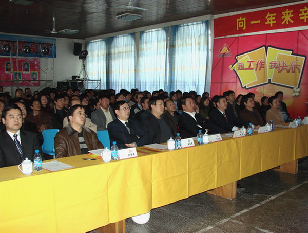 在开工动员大会上,到场员工首先观看了公司上市专题片,接着公司总经理常文玖作了动员讲话,公司工会主席周维军宣读了公司党委、公司工会、公司团委倡议书,由总经理常文玖与公司机关各部室负责人签订2008年业绩合同书。最后,公司董事长、党委书记秦勇作了重要讲话。