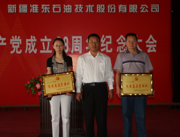 随后,大会主持人王玉新宣读公司党委下发的表彰决定,常文玖副书记为获得“优秀共产党员”称号的员工颁发奖状,由秦勇书记为获得“先进基层党组织”称号的单位颁发了奖牌。