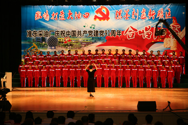 “七·一”前夕,准东采油厂党委办公室、组织人事科、工会、团委联合发出通知,决定在中国共产党成立91周年之际开展“以热爱伟大祖国,建设美好家园,颂歌献给党,描绘新准东”为主题的歌咏比赛活动,要求准东地区各单位在不影响工作的前提下认真准备,用歌声表达各族员工对党的真挚感情。